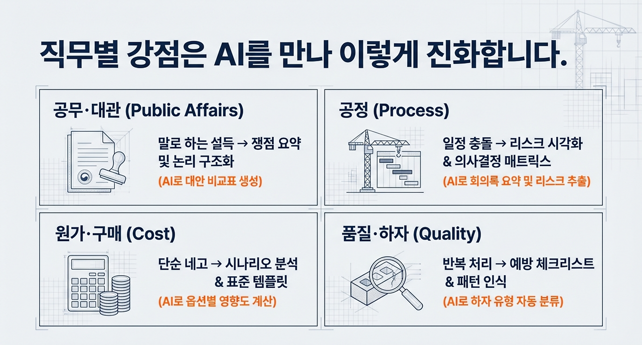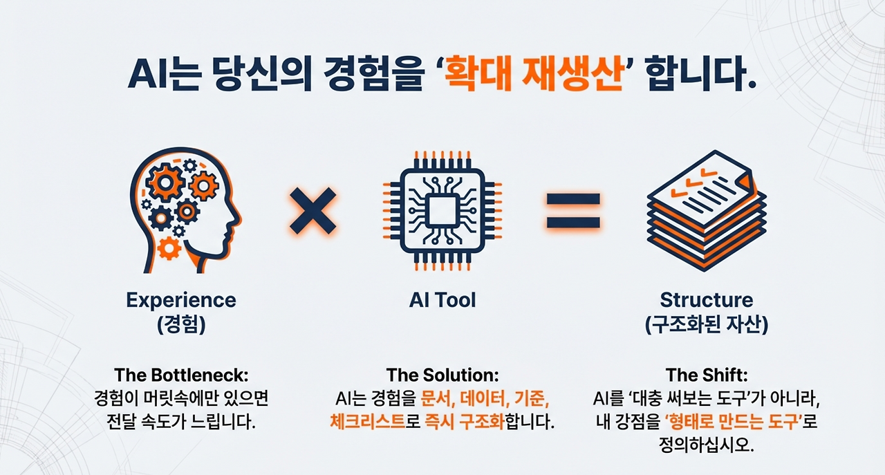 경험이 AI와 결합해 문서, 데이터, 기준, 체크리스트로 빠르게 형태를 가지면 성과가 빨라진다.