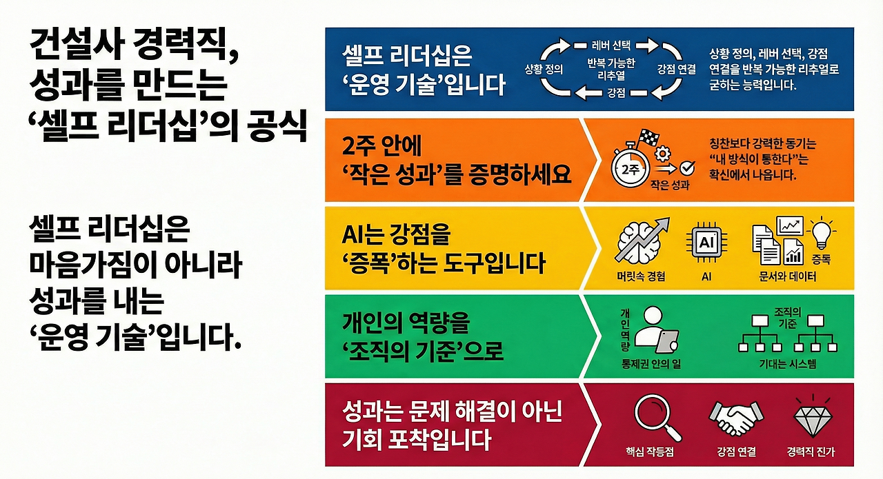 #경력직 #셀프리더십 #강점활용 #동기부여 #건설업 #AI업무혁신 #업무표준화 #리추얼 #성과관리 #디지털트윈