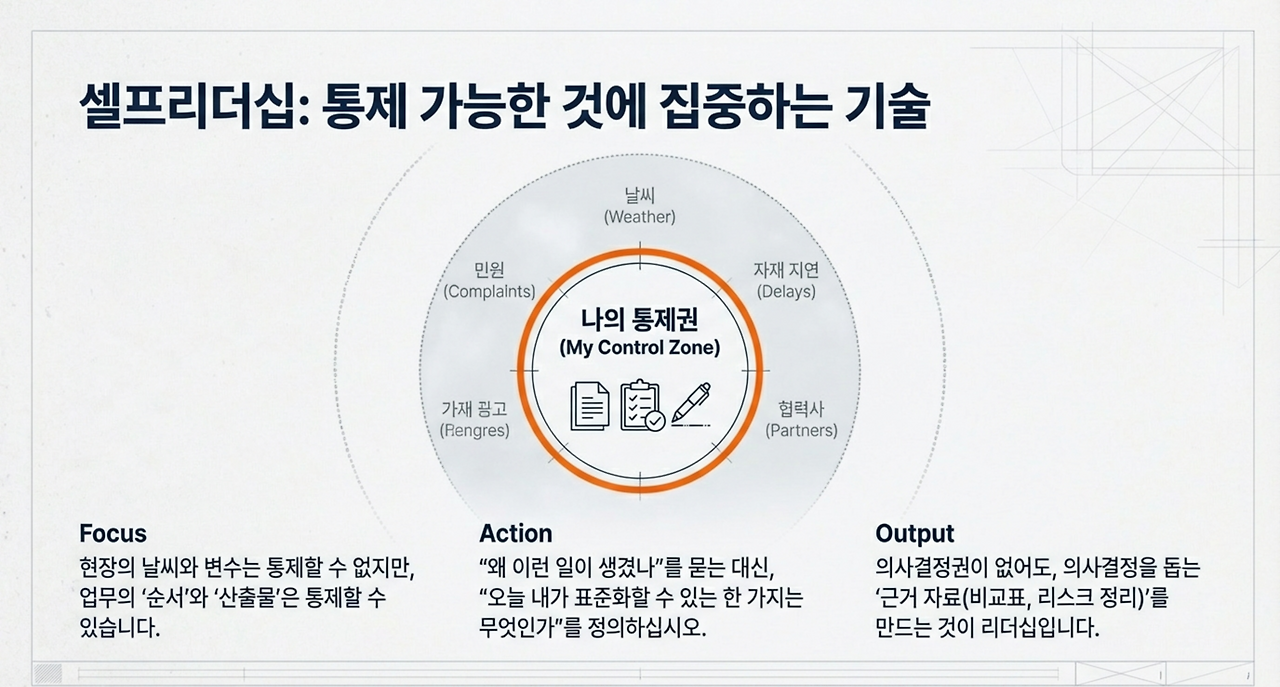 경력직에게 현실적인 셀프리더십은 ‘통제권 안’에서 성과가 나는 방식으로 일을 설계하는 능력이다.