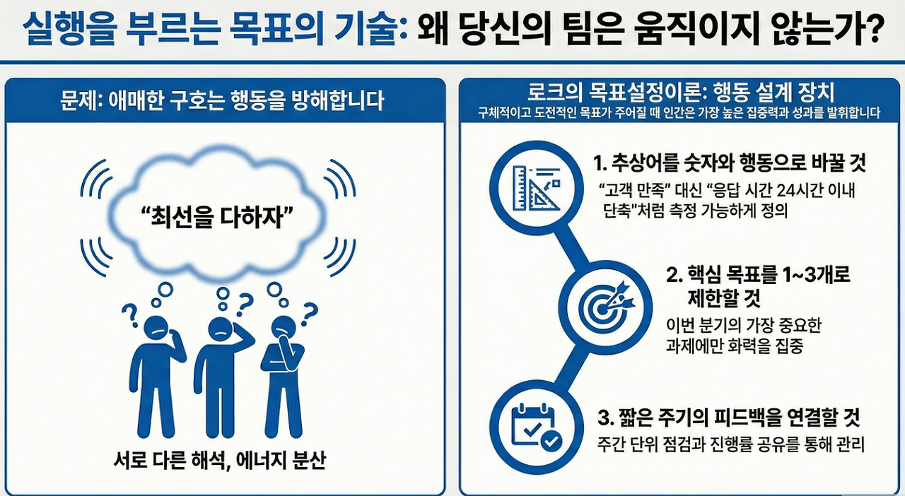 그래서 “열심히 하자”보다 “이번 달 신규 고객 50명”이 강하다.