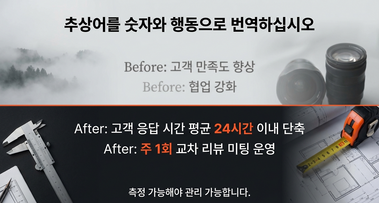 고객 만족도 향상이라는 말을 그대로 두면, 팀은 흩어진다.