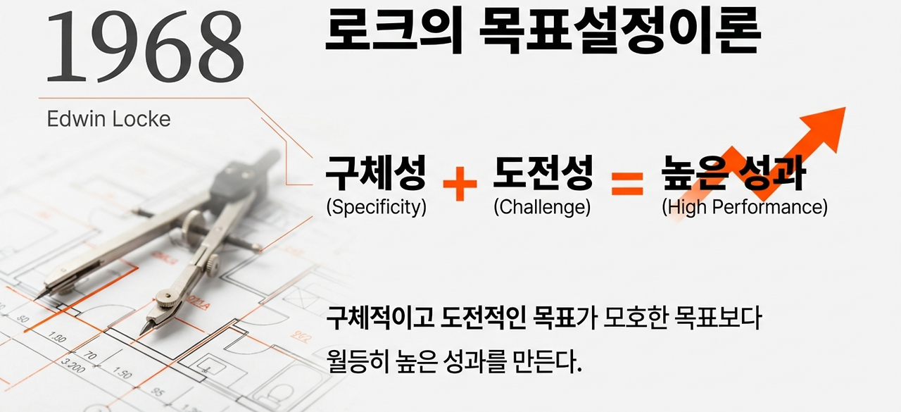 에드윈 로크(Edwin Locke)는 1968년 연구에서, 구체적이고 도전적인 목표가 모호한 목표보다 더 높은 성과를 만든다고 제시했다.