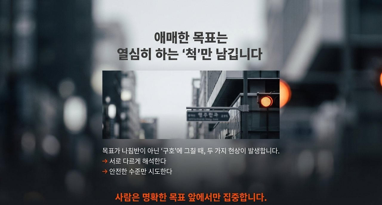 목표가 애매하면 사람은 열심히 하는 척만 남는다.