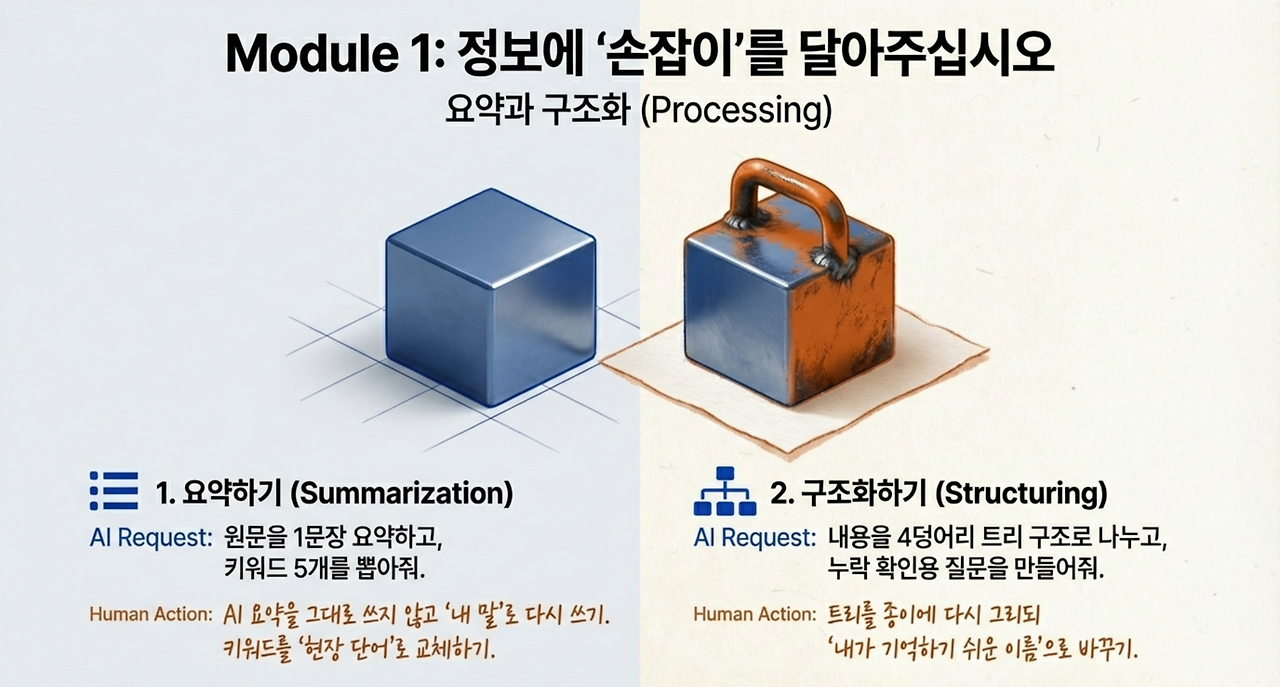 ① AI 요약을 그대로 쓰지 않고 ‘내 말’로 1문장을 다시 써서 확정하기