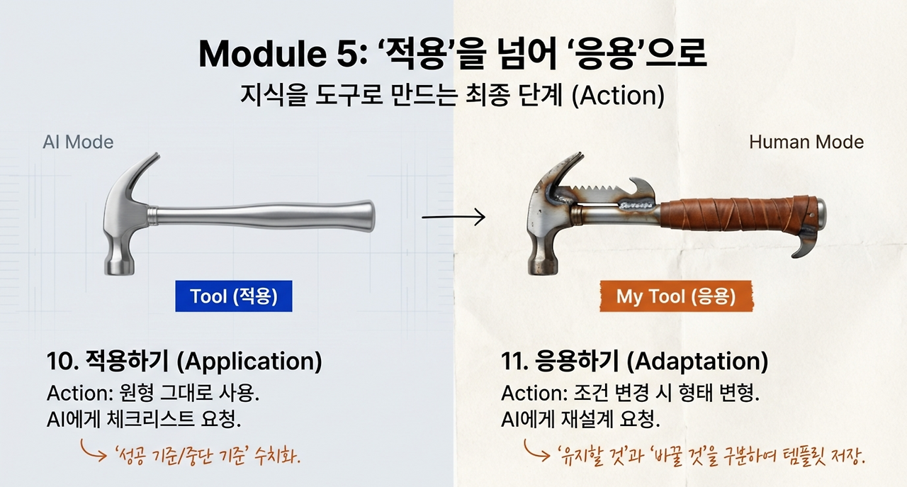 응용까지 가면 지식은 더 이상 정보가 아니라 ‘내 도구’가 된다.