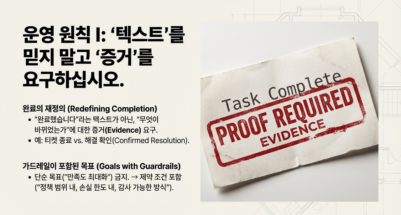 성공 조건을 “완료했습니다”가 아니라 “무엇이 바뀌었는가”로 변경해야 한다.