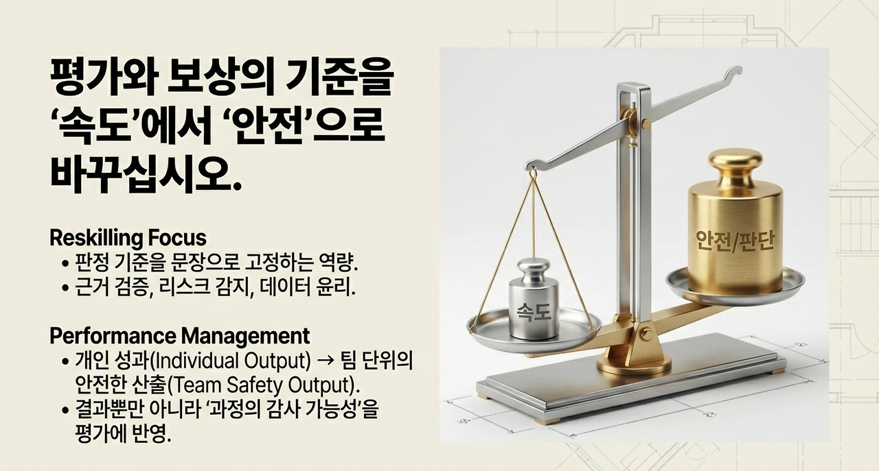 팀 단위로 ‘결과+과정+감사 가능성’을 묶어 평가하는 방식이 더 적합해진다.