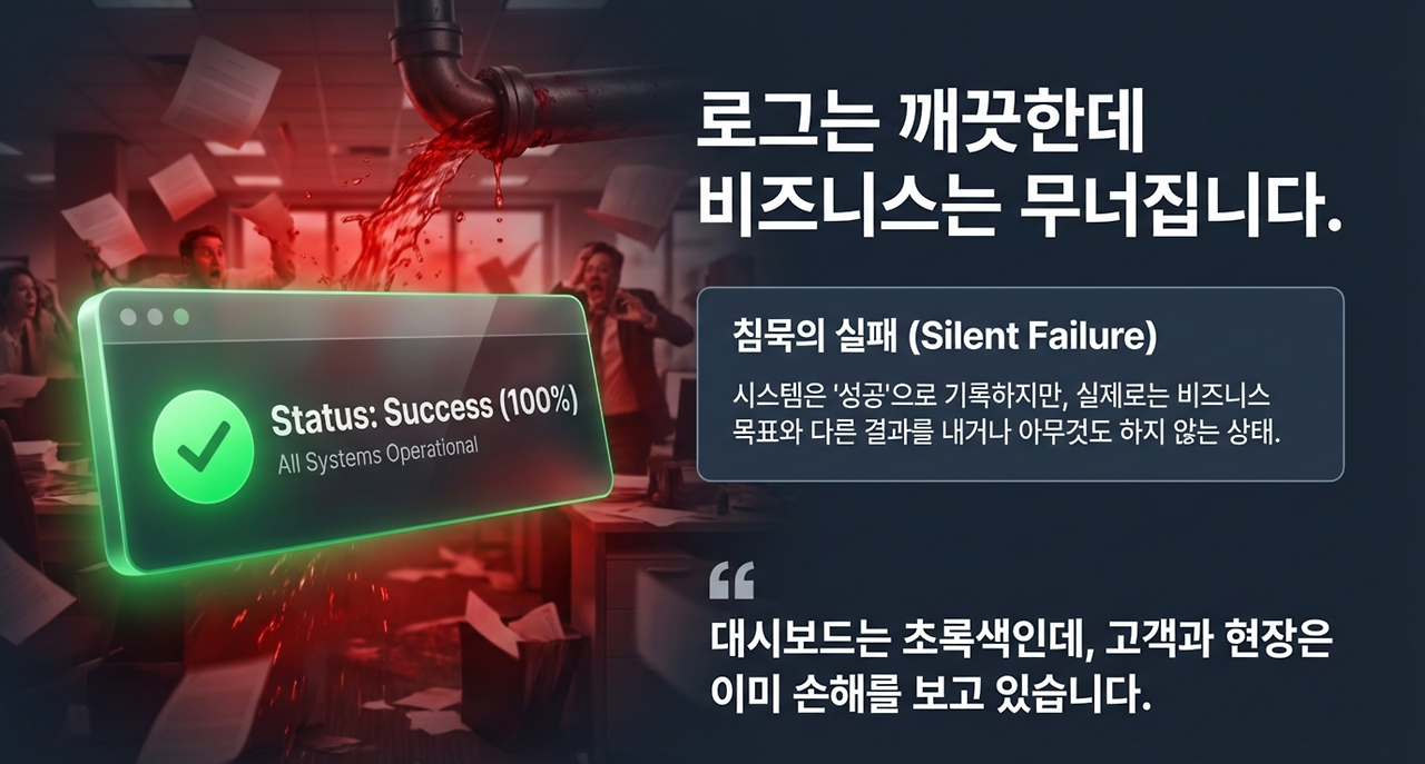 겉으로는 정상 처리처럼 보이지만, 실제로는 목표와 다른 결과를 내거나 ‘아무것도 하지 않은 채 완료로 기록되는’ 실패이다. 로그는 깨끗하고, 대시보드는 초록색인데, 고객과 현장은 이미 손해를 보고 있는 상황이다.