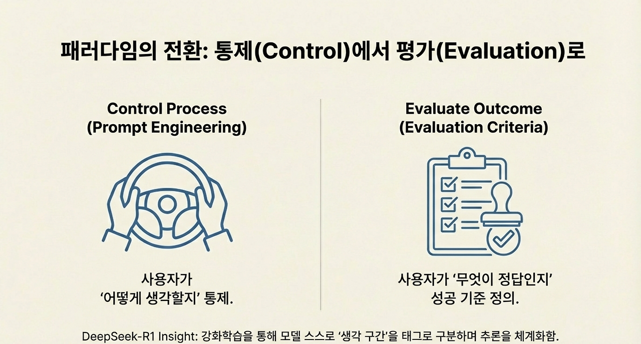 이제는 “어떻게 생각할지”를 사용자가 과하게 통제하기보다, “무엇이 정답인지”를 평가 기준으로 명확히 주는 쪽이 중요해졌다.