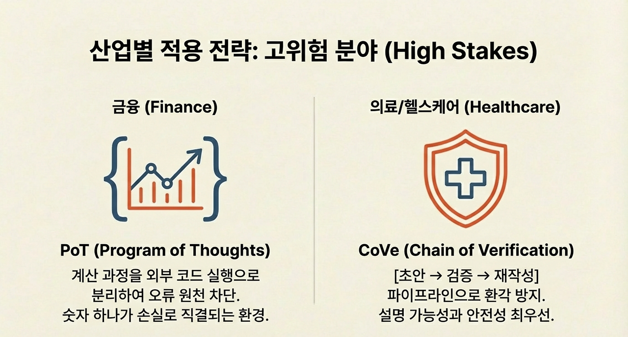 CoT 자체보다 “검증 가능한 근거와 조건 체크”를 내장한 CoVe가 안전망이 된다.