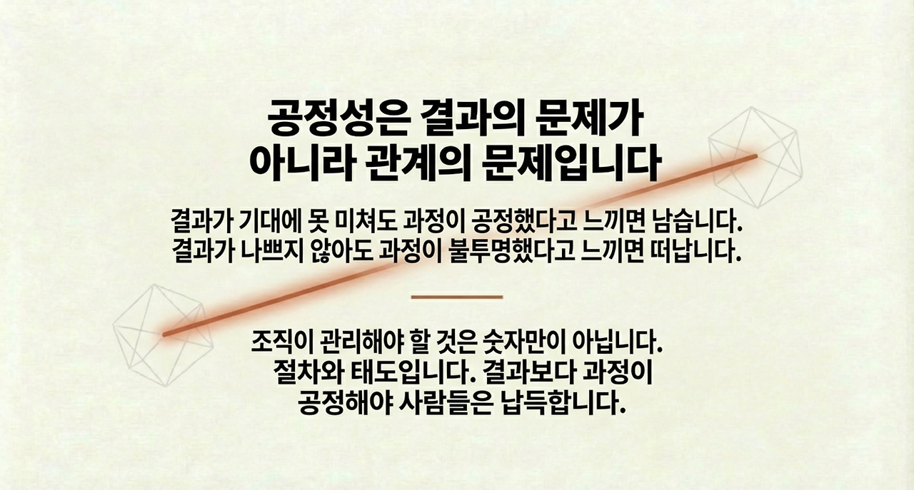 공정성 인식은 제도 설계와 리더의 태도에서 동시에 만들어진다.