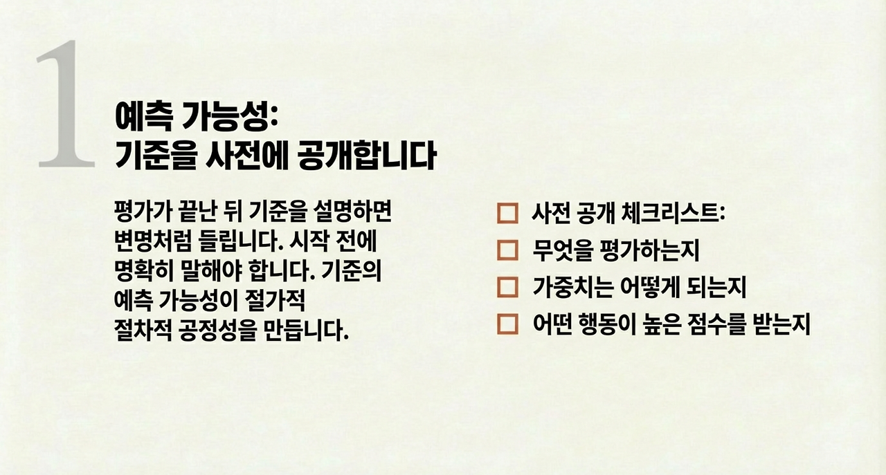 평가가 끝난 뒤 기준을 설명하면 변명처럼 들린다.