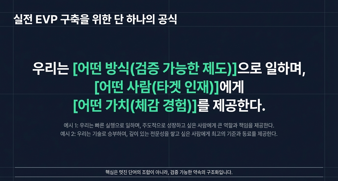 EVP는 제도가 아니라 체감 경험을 약속하는 문장이어야 한다.