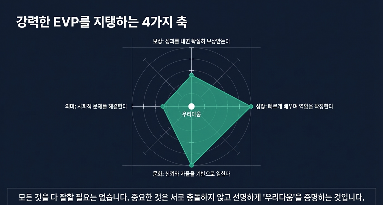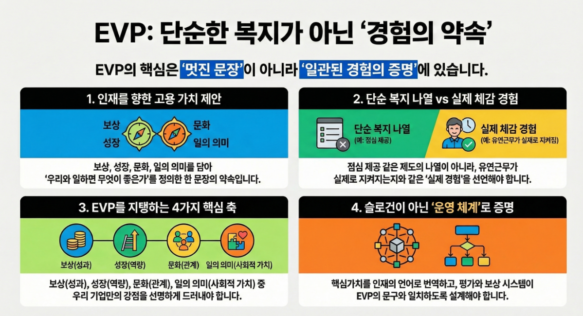 EVP는 고용가치제안이라는 번역을 넘어, 조직의 가치체계와 운영을 인재 언어로 연결하는 다리이다.