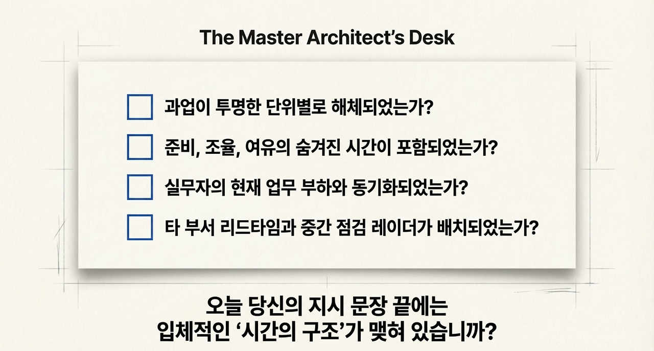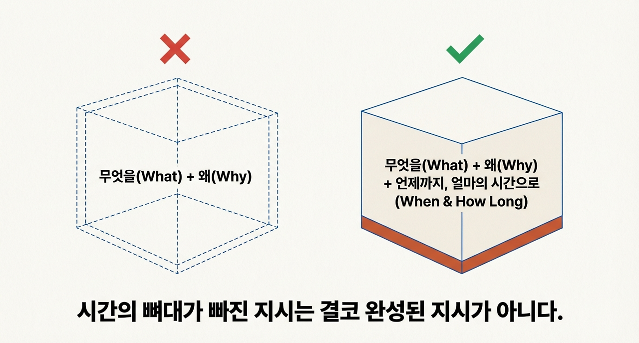 오늘 누군가에게 지시를 내렸다면 그 지시의 문장 끝에 반드시 시간의 구조가 맺혀 있는지 확인해 보라.