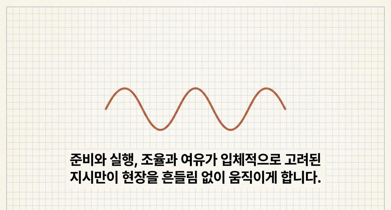 준비와 실행 조율과 여유의 시간이 모두 입체적으로 고려된 지시만이 현장을 흔들림 없이 움직이게 할 것이다.