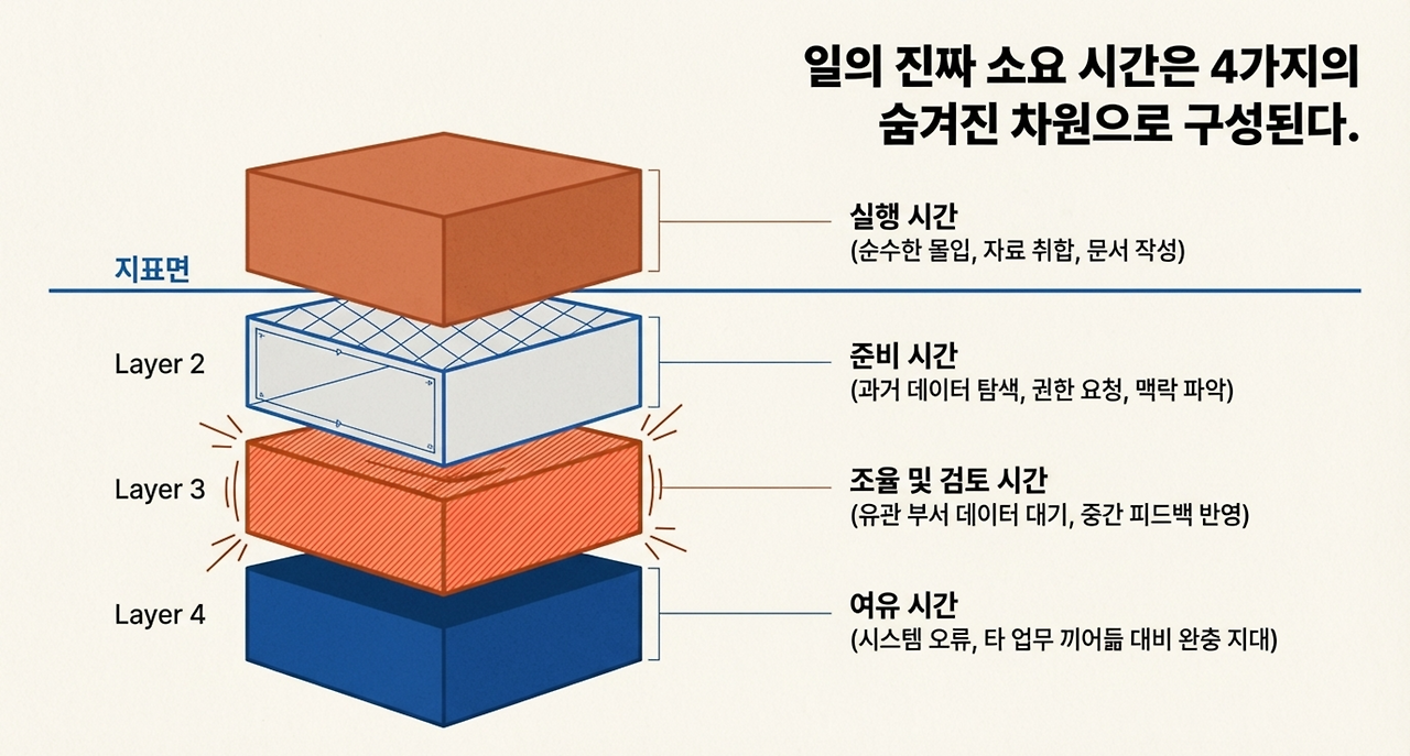 하지만 실제 현장에서의 소요 시간은 결코 단일한 시간 덩어리가 아니다.