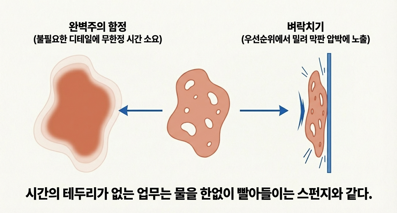 팀원은 완벽주의의 함정에 빠져 불필요한 디테일에 시간을 쏟거나, 반대로 우선순위에서 밀어두다 막판에 벼락치기를 하게 된다.