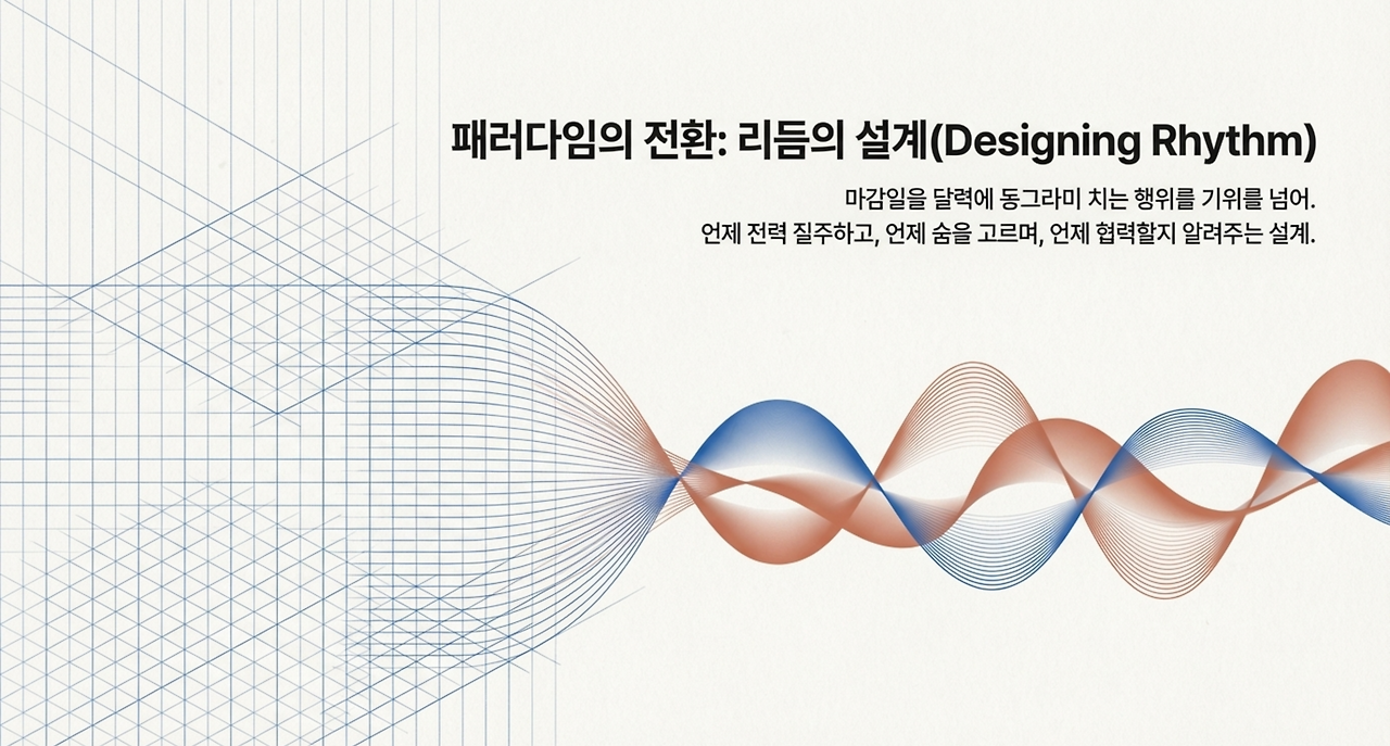 그것은 팀원이 며칠 동안 어떤 호흡으로 몰입하고 어느 시점에 숨을 고르며 누구와 협력해야 하는지를 알려주는 리듬의 설계이다.