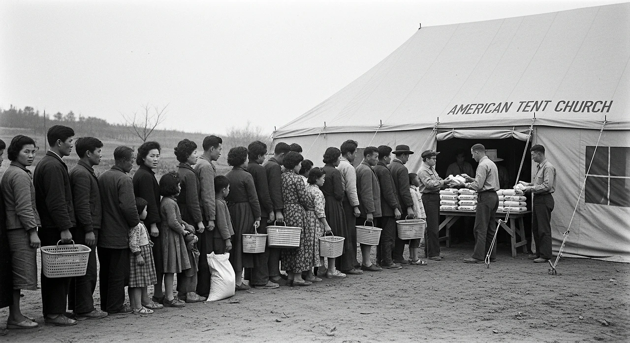 전쟁의 포화가 멈춘 1950년대 말과 60년대 초, 한국 땅은 그야말로 거대한 폐허였습니다. 먹을 것이 없어 나무껍질을 벗겨 먹던 시절, 마을 언덕 위에 세워진 붉은 벽돌 교회나 초라한 천막 교회는 단순한 종교 시설이 아니었습니다. 그곳은 생존을 위한 마지막 보루였습니다.