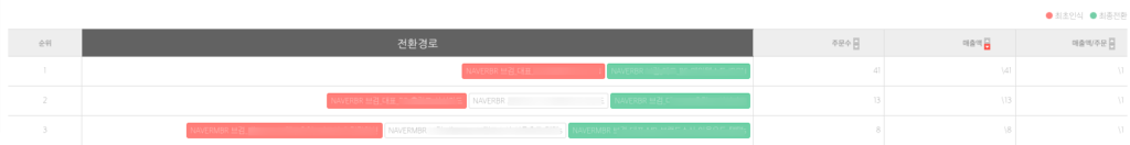 [전환경로 탐색] 리포트에서는 주문이 발생하기 전까지 거쳤던 광고들의 경로를 탐색할 수 있습니다.