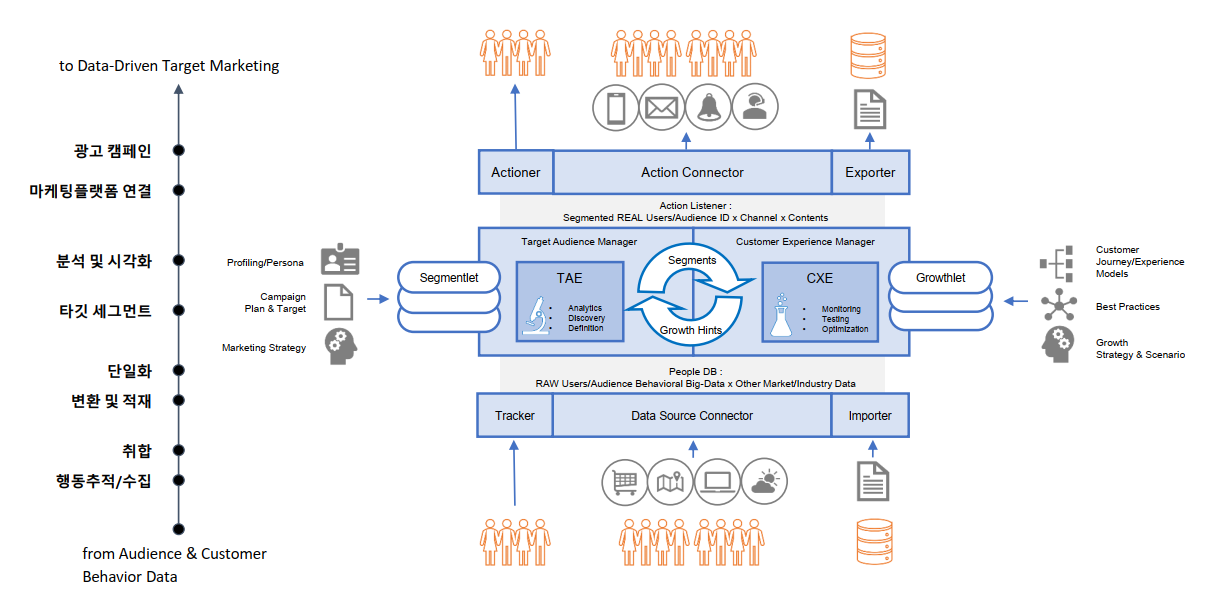 인터넷 상에서 획득할 수 있는 데이터들은 다양한 경로로 수집이 가능합니다. 방문자 행동 데이터를 획득하여 웹 분석, 광고 성과 분석에 이용하기도 하고, E-커머스 사이트의 경우 자사 제품 데이터를 이용하여 컨텐츠/아이템 추천에 활용하기도 합니다. 방문자 행동과 컨텐츠 데이터를 결합하여 개인화 추천/광고에 이용하기도 하고, 광고 제공자로 부터 API를 이용하여 획득할 수 있는 광고 집행 데이터와 방문자 행동 데이터를 결합하여 마케팅/캠페인에 활용하기도 합니다. (growthplatform.ai).
