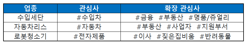 이렇게 코어 타겟의 관심사를 분석하여, 자사 브랜드의 타겟층을 확장할 수 있습니다.