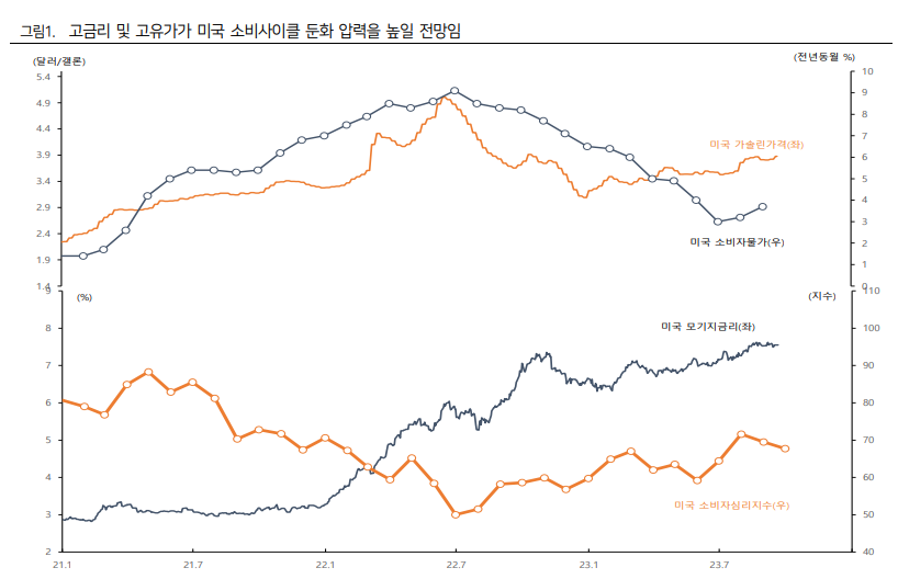 미국 모기지금리, 가솔린 유가, 소비자 물가, 소비자 심리지수 그래프 / 출처: 하이투자증권