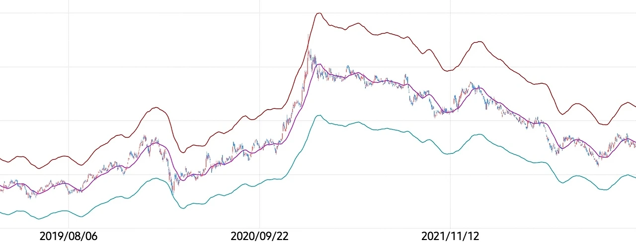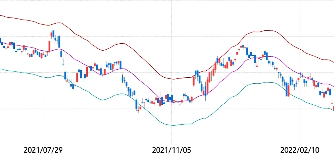 엔벨로프(Envelope) 지표는 이동평균선과의 주가 등락률을 기반으로 주가를 분석하는 보조지표이다. 이동평균선을 중심선으로 두고 일정 비율을 정해 이동평균선과 멀어진 상단선, 하단선을 설정한다.