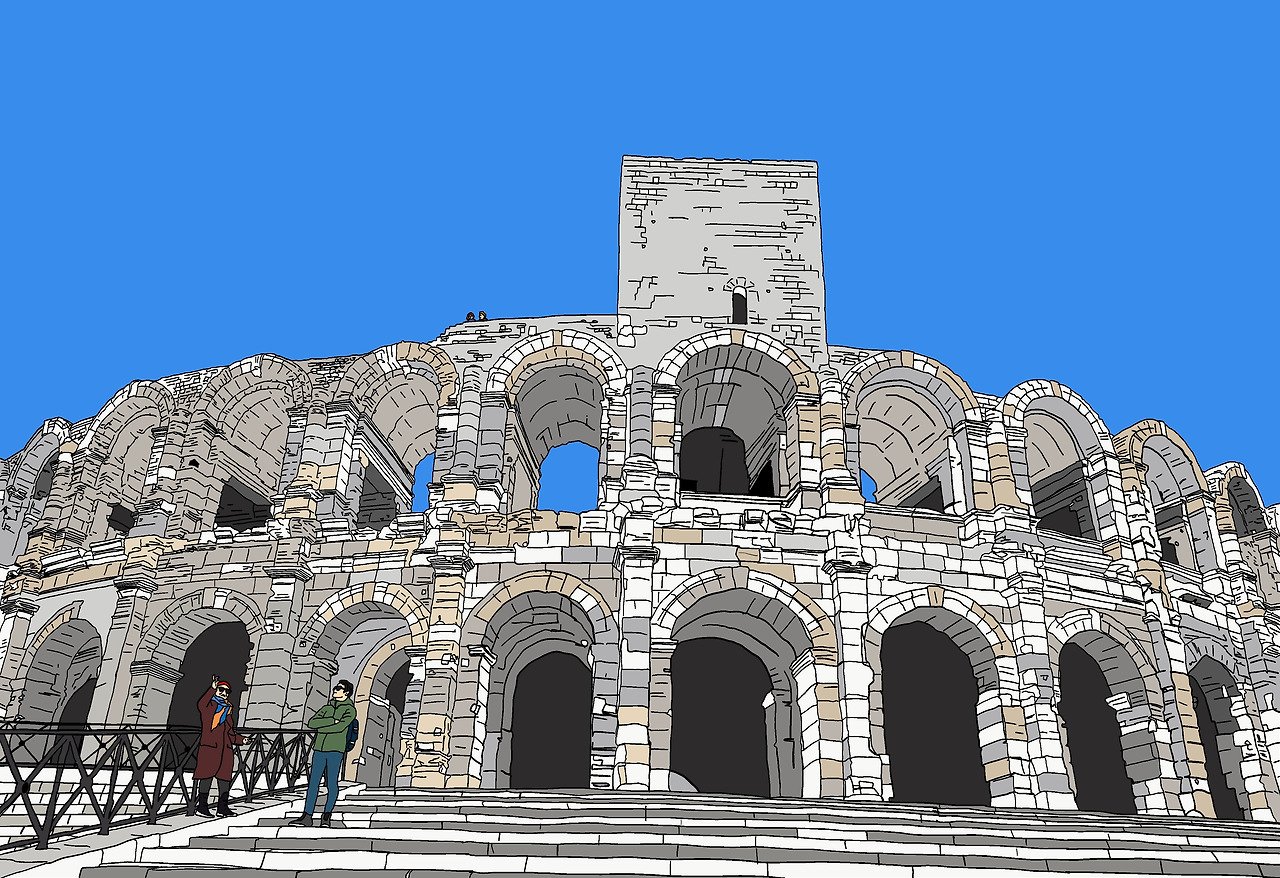 구시가지의 어떤 길이든 고흐의 걸음을 따라 걷는 기분이 든다. 골목길 구경에 전신없이 다니다보니 안쪽으로 로마 시대에 지어진 커다란 원형경기장이 나타났다. 경기장은 나지막한 언덕 위에 커다란 몸집을 웅크리고 앉은 것처럼 있었는데 콜로세움에 비할바가 아니었지만 마을의 크기를 생각하면 과거 이 건물 앞에선 사람들이 느꼈을 장대함은 대단했을 것이다.