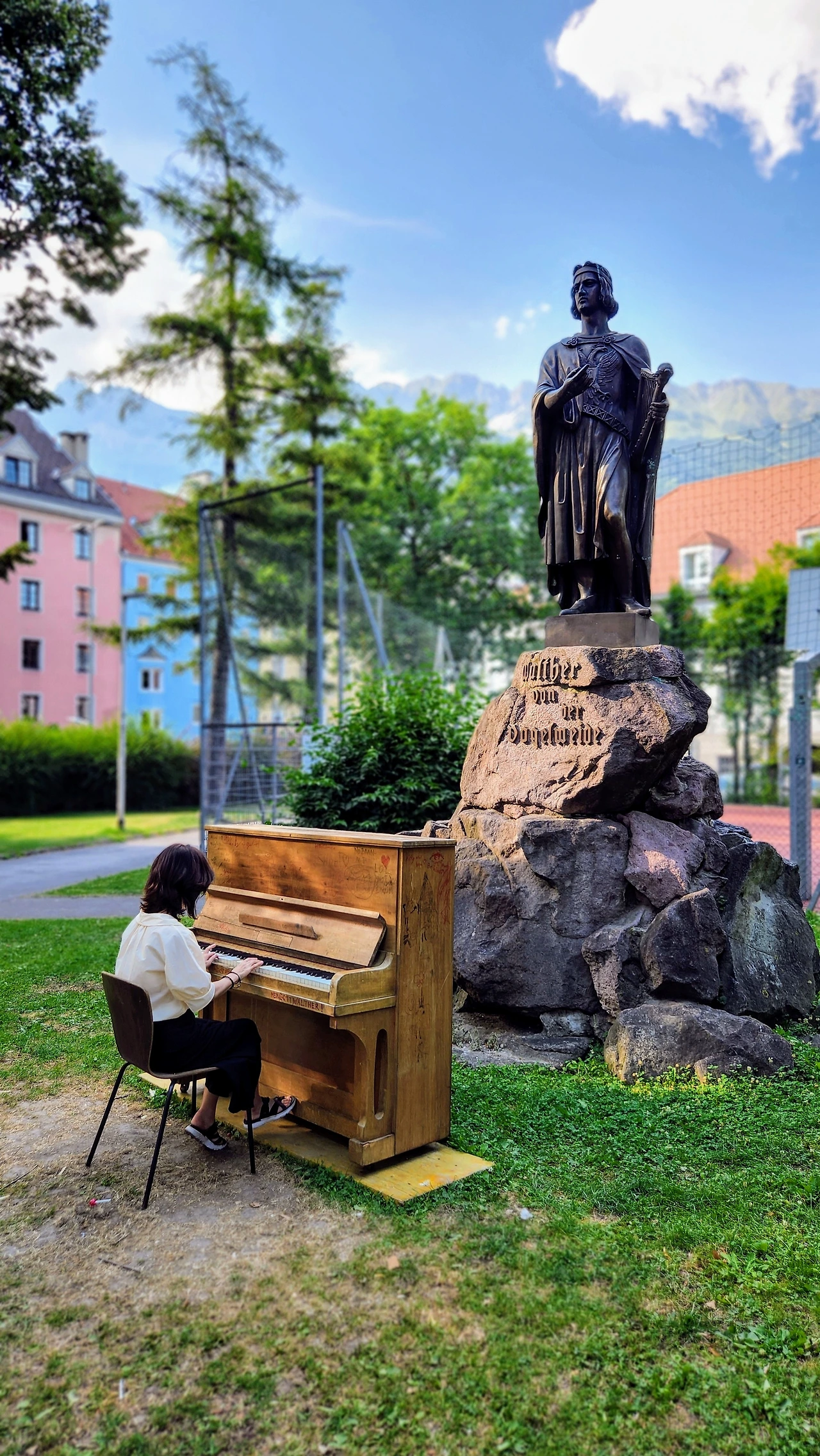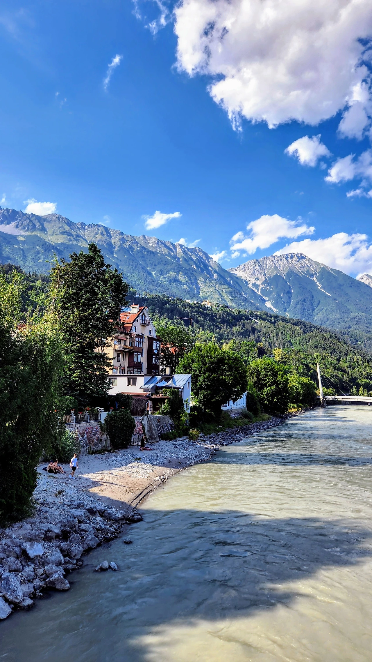 그리고 자연스럽게 인 강(Inn River)을 따라 걷는 산책길로 걸음을 옮겼다. 나는 강가에서 불어오는 알프스의 차가운 바람을 느끼며, 이곳의 평온함에 잠시 숨을 고를 수 있었다. "이런 곳에서 강변을 걷는 것만으로도 이 도시가 주는 선물이네요, " 나도 모르게 입에서 나온 말에 지니가 미소 지었다. 그 순간이 참 좋았다. 강변에 놓인 벤치와 여러 조형물들 모든 것이 완벽한 위치에 놓여 있는 것처럼 보였다.