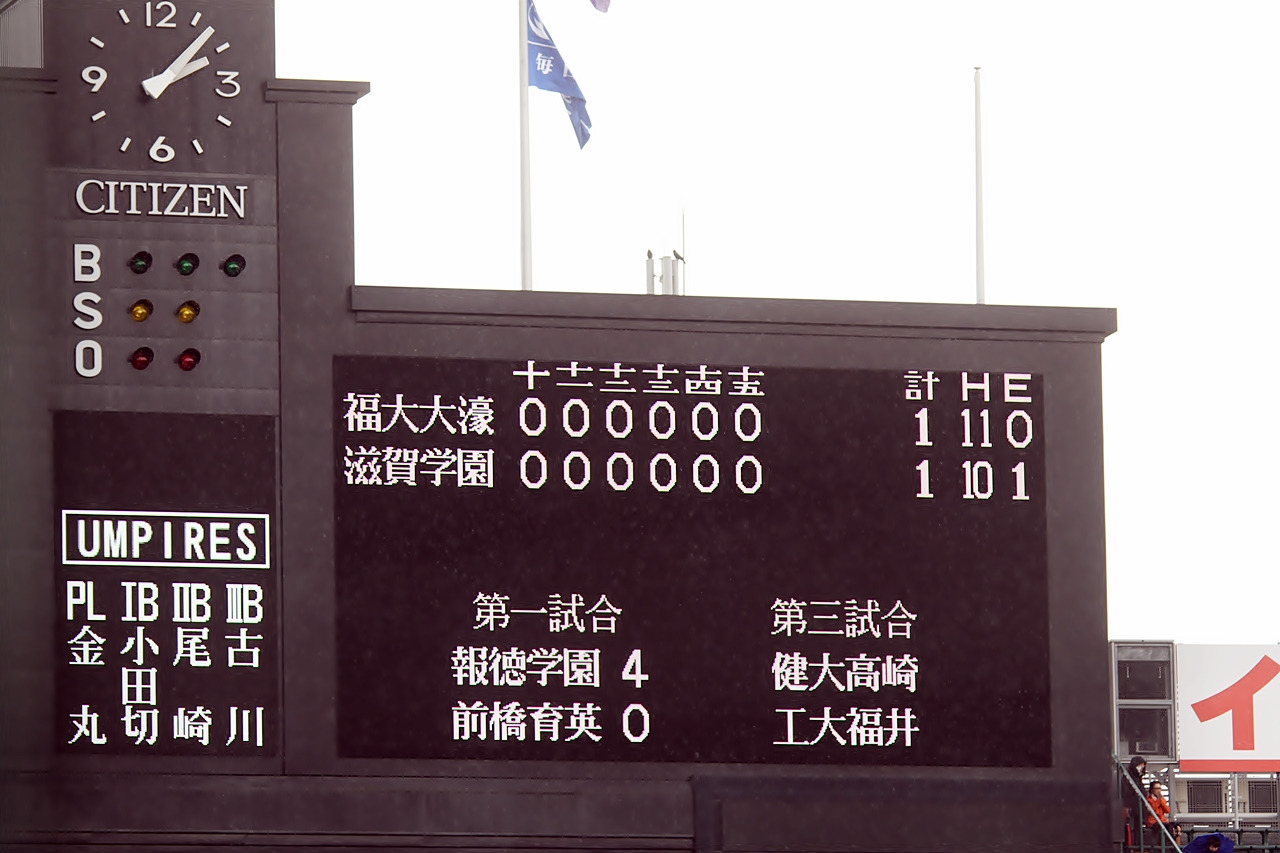 선발고교야구대회(이하 센바쓰)는 준준결승을 제외하면 통상 하루 3경기가 편성된다. 이에 26일, 후쿠오카대부속 오호리(福岡大大濠)와 시가학원(滋賀学園)이 연장 15회 끝에 1 대 1 무승부로 종료됐을 때만 해도 고시엔 전광판에는 27일 4경기를 편성하여 재시합이 열리는 일정이 안내됐다.