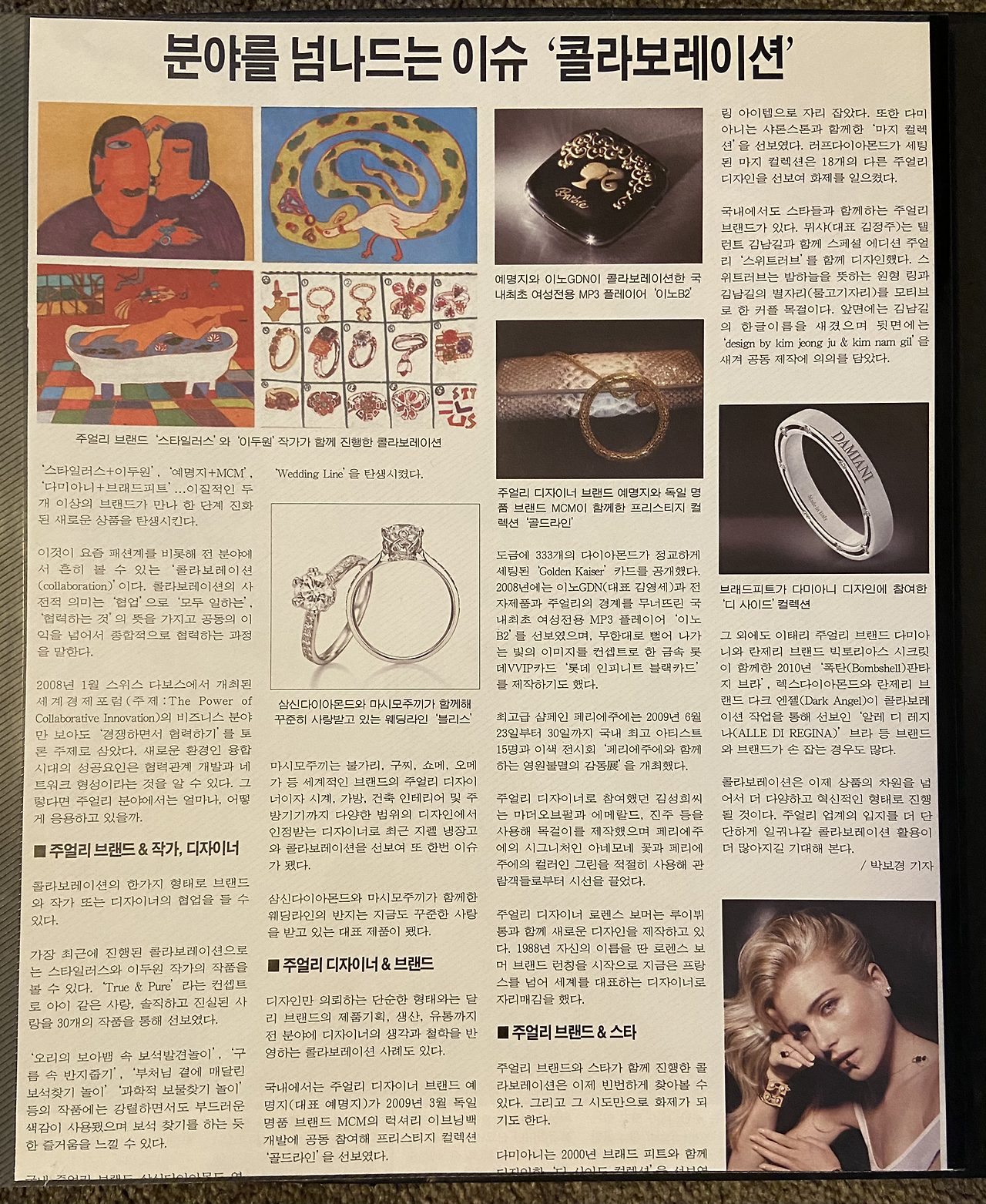 그동안 제작과 시스템을 배웠다면 기자는 소식과 사람을 상대하는 일이었다. 종로 한복판으로 출퇴근을 하며 일을 했다. 그때 선배기자를 통해 기본적인 글 쓰는 법과 인터뷰하는 법을 배웠다. 업계의 소식을 전하는 뉴스, 내가 콘셉트를 정하고 주얼리 소식을 모아 만드는 기획기사, 주얼리 업계에서 크고 작은 일을 해내고 있는 사람들의 인터뷰를 신문에 실었다.