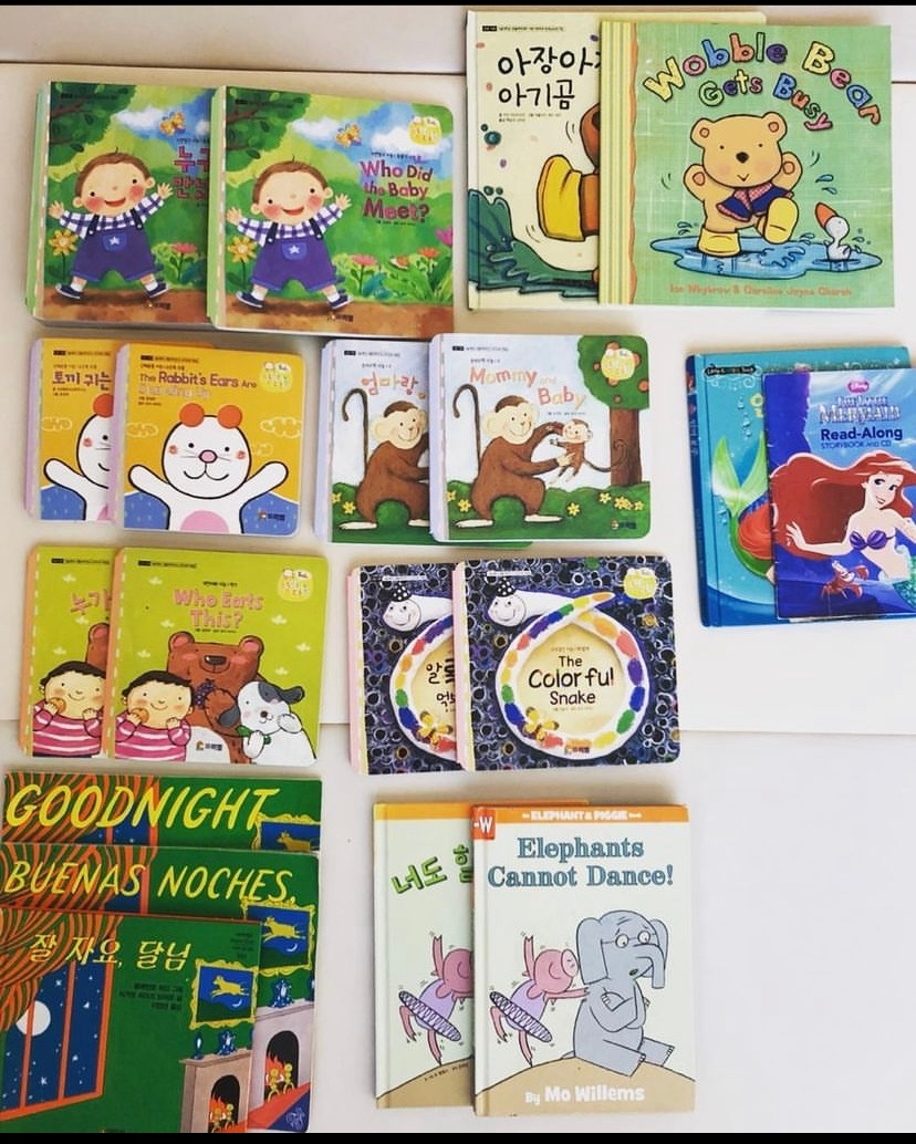 한국에는 유명한 외국도서를 번역한 책들이 많은데, 그런 그림책들을 영어책 한 권, 한글책 한 권 쌍둥이로 사서 읽는 것이다. 물론 책마다 번역 스타일이 다르긴 하지만 보통은 그림도 같고, 내용도 같기 때문에 아이들이 스스로 보고 내용을 이해한다.