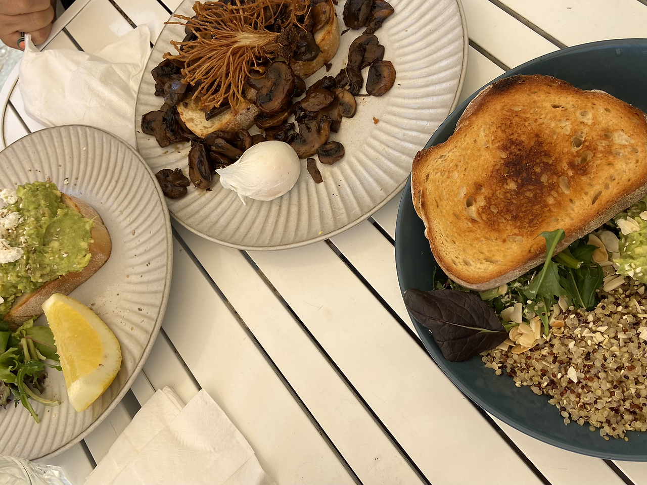 주문한 커피와 음식이 나왔다. 관광지인만큼 음식맛은 전혀 기대하지 않았지만 그래서일까, 생각했던 것보다 빵도 바삭하고 괜찮았다. 야외테이블의 많은 사람들이 커피와 맥주를 마시며 즐거운 시간을 보낸다.