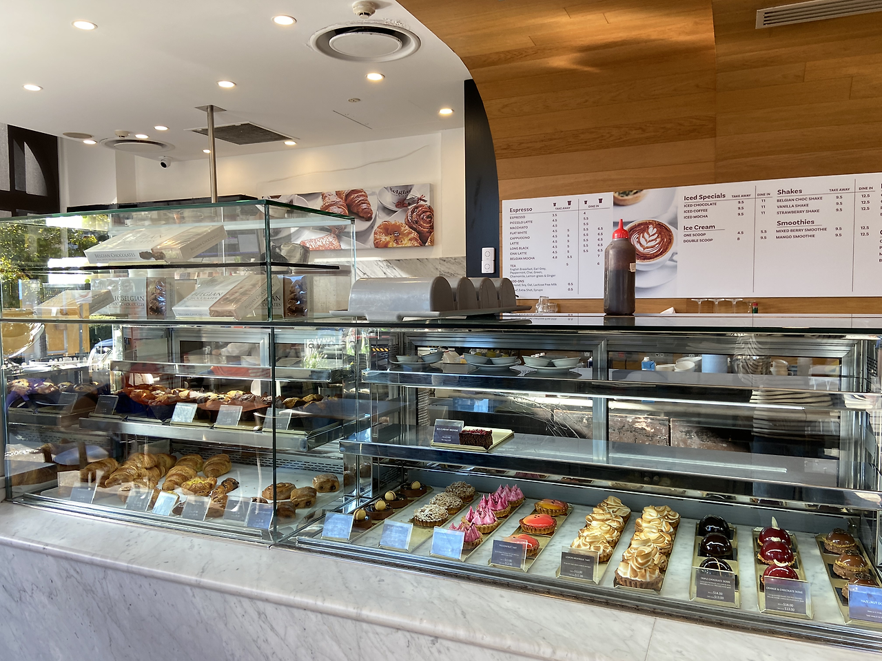 내부로 들어가니 커다란 캐비닛이 눈에 띈다. 많은 종류의 크로와상, 케이크, 타르트가 진열돼 있다. 색상이나 모양이 정말 찍어낸 듯 예쁘다. 캐비닛 푸드 말고도 메뉴판에는 다양한 음식이 있다.