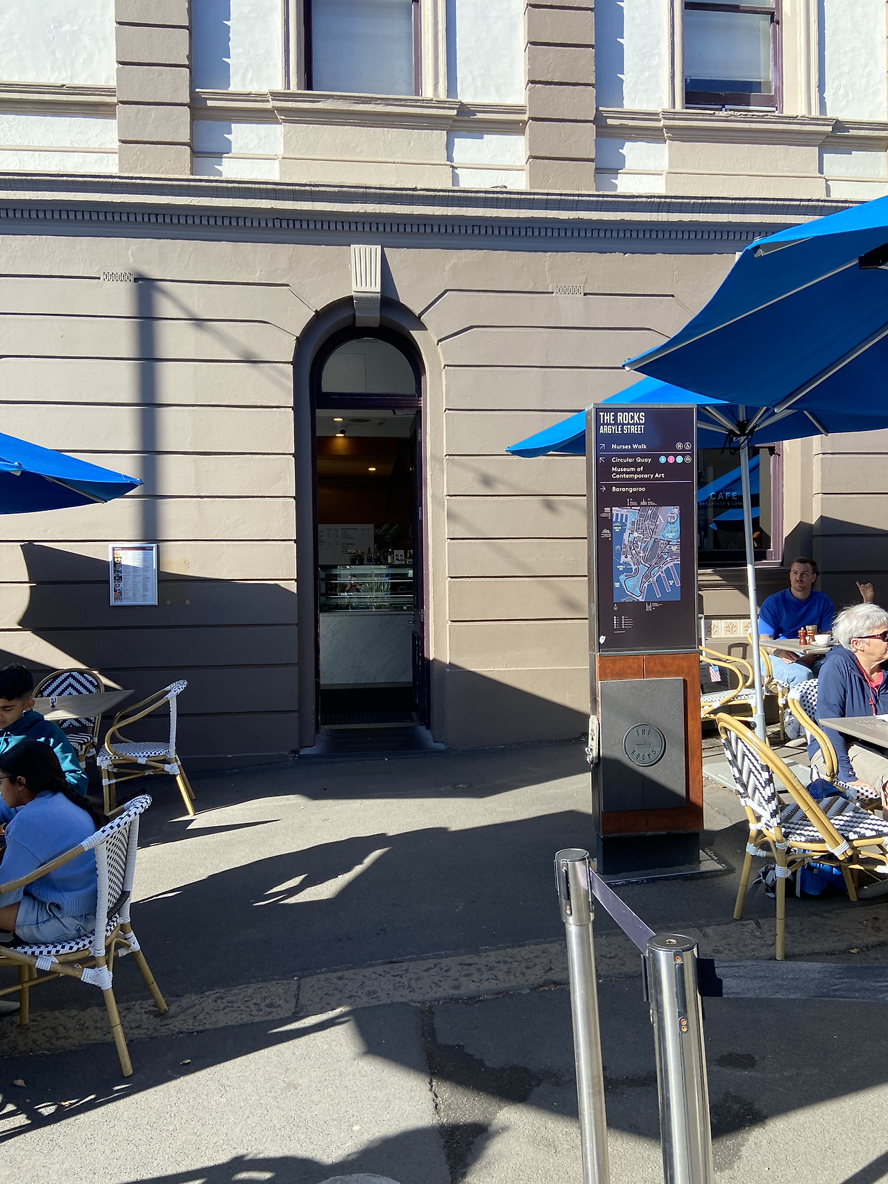 이 카페 역시 The Rocks의 La Renaissance 카페 근처에 위치해 있다. 오늘도 역시 실내보다 야외에서 햇빛을 즐기는 사람들이 많다.