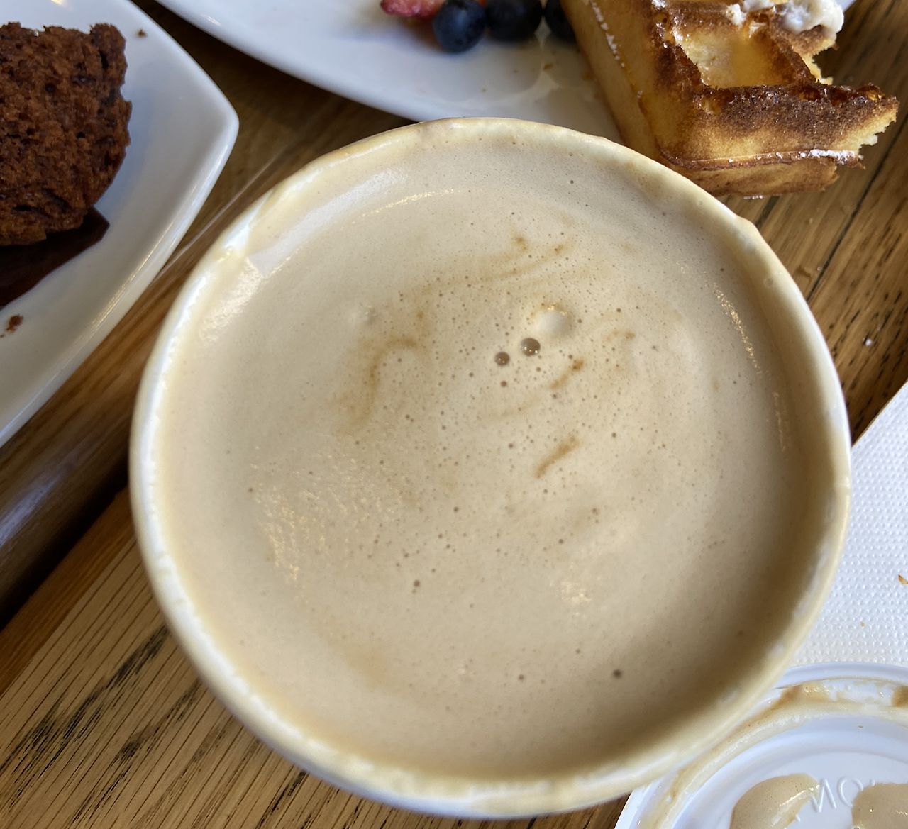 내가 칼로리를 생각하지 않고 또 먹으려고 할 때 쯔음, 소이 밀크의 거품이 가득 찬 소이라테가 나왔다. 소이밀크는 한국에서 먹는 베지밀이나 두유와 달리 전혀 달지 않다. 고소함과 커피의 진함만 느낄 수 있다. (달콤한 맛을 원한다면 코코넛밀크를 넣은 코코넛플렛화이트를 추천한다.)