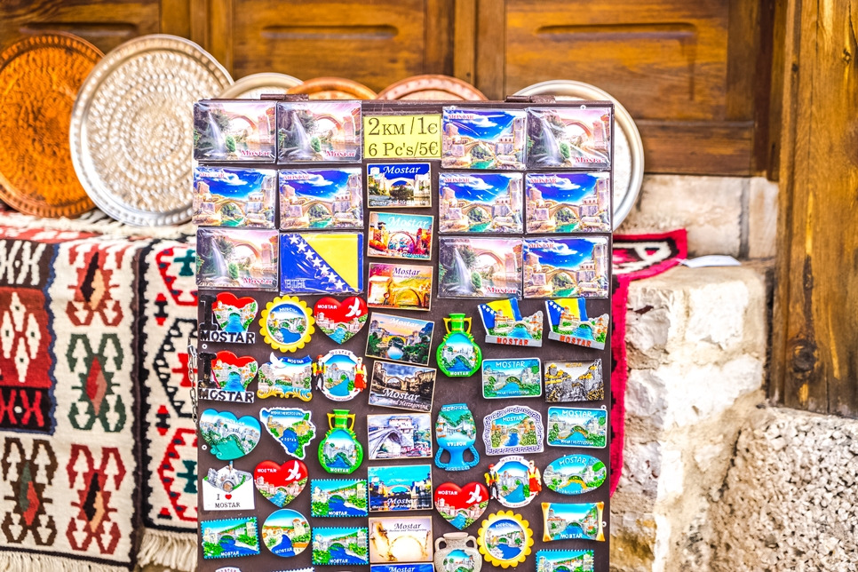모스타르의 유서 깊은 오래된 거리를 건너 이슬람 구역으로 이동했다. 그리고 이른 아침 문을 굳게 닫고 있었던 상점가들이 문을 열었음을 확인하게 되었다. 과연 어떤 물건들을 팔고 있을지 궁금해지는 순간이기도 하다. 그저 평범한 여행용 기념 패치에서부터 유리세공품들이 주를 이루었던 것 같다. 독특한 세공품들을 바라보고, 또 바라본다.