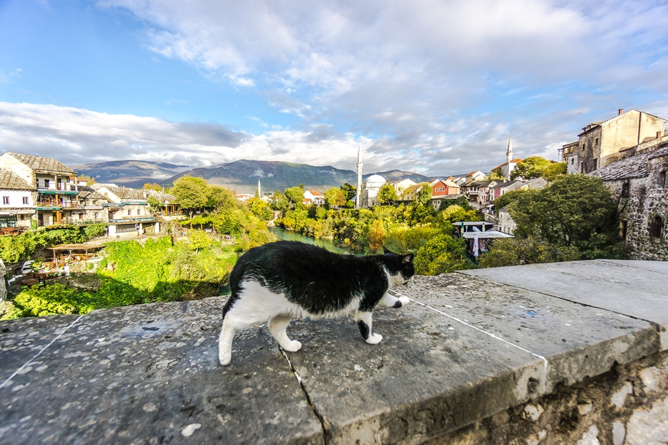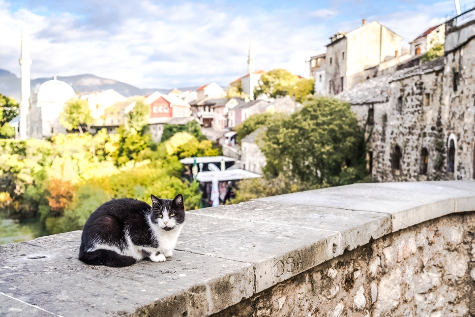 오래된 다리 위에서 만난 고양이 한 마리의 모습이다. 내가 사는 서울의 한 동네에서 마주치는 고양이와 너무나도 닮아서 깜짝 놀랐던 기억이 난다. 비슷한 고양이는 많지만, 이 녀석은 모스타르 다리를 좋아하는 것 같다. 여기에서 오랜 시간 머무는 것을 그저 바라본다.