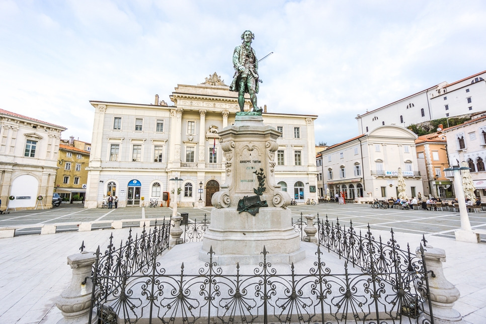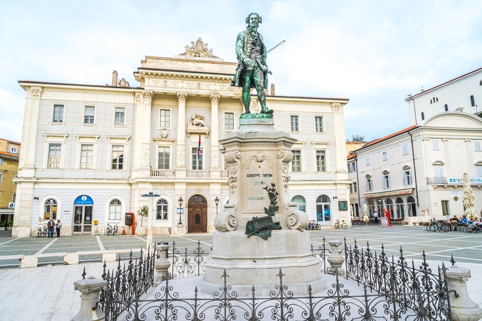 여행에는 늘 시작점이 있다. 다양한 패키지여행에 가보았지만, 늘 그렇듯 어딘가 모이는 장소가 있기 마련이다. 슬로베니아 '피란'에서 여행의 출발지이자 집결지는 바로 이곳 '타르티니 광장'이었다. 타르티니는 이탈리아의 작곡자이자 바이올리니스트이다. 트리티니에게는 유명한 바이올린 소나타인 '악마의 트릴로'등 대표적인 명곡들이 여럿 있다고 한다. (1692.04.08 ~ 1770.02.26) 그의 태생은 베네치아 공화국 이스트리아 반도(현재 슬로베니아 피란)로 현재 내가 서있는 곳이 바로 타르티니의 고향이다.