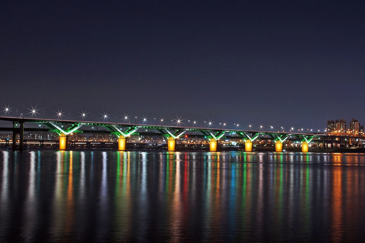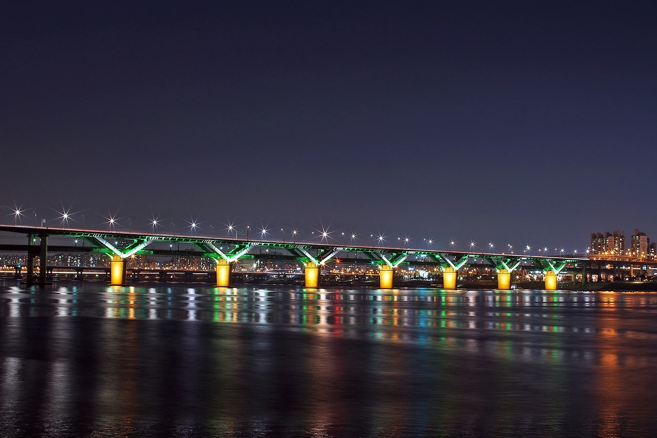 청담대교는 서울시 광진구 자양동과 강남구 청담동 사이를 잇는 한강의 대교이다. 지금도 그런지는 모르겠으나, 독특한 것은 겨울에 교량의 색이 초록색이라는 것인데, 다른 계절에는 주황빛 교량을 만나게 된다. 복층교량으로 7호선 지하철이 통과하고 있는 '청담대교'의 새로운 모습이다.