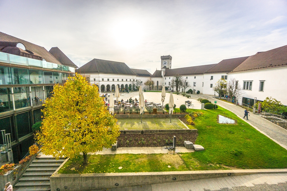 뒤편으로는 류블랴나 성의 모습이 눈에 들어왔다. 카페가 있고, 성의 건물들이 있고, 시계탑이 있다. 사진 속으로 보이는 시계탑에 오르게 되면, 류블랴나의 전망들을 만끽할 수 있는데 이와 관련된 이야기는 다음 편에서 소개하고자 한다.