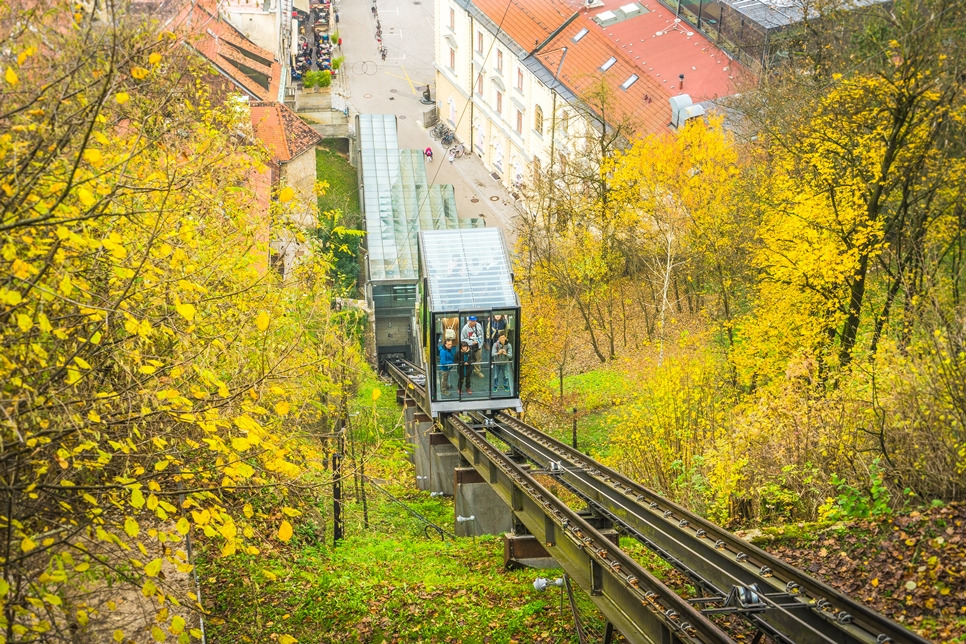 푸니쿨라는 밧줄의 힘으로 궤도를 오르내리는 산악 교통수단, 밧줄을 이용하여 움직이는 케이블카 정도를 떠올리면 될 것 같다. 류블랴나 성으로 향하는 푸니쿨라는 오랜 시간 이동해야 하는 탑승 수단은 아니었지만, 그래도 푸니쿨라에 올라 성으로 향하는 길에 뒷 풍경 들을 습관적으로 담아보게 되었던 것 같다.