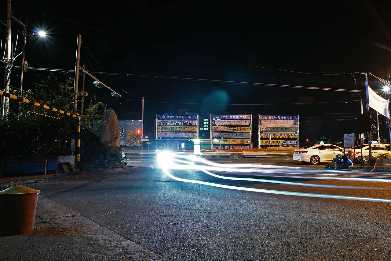 강화 터미널로 들어오는 차량들의 궤적을 담아낸 사진 한 장이다. 늦은 밤이지만, 터미널이기에 많은 차량들이 이곳 터미널을 향해서 들어온다. 자동차 라이트의 불빛은 삼각대를 놓고 촬영하는 카메라 장노출에 의해 궤적이 되어 버린다. 차량이 흘러가는 시간이 그대로 멈춰 사진 속에 기록된다는 것에 나는 매력을 느꼈던 것 같다.
