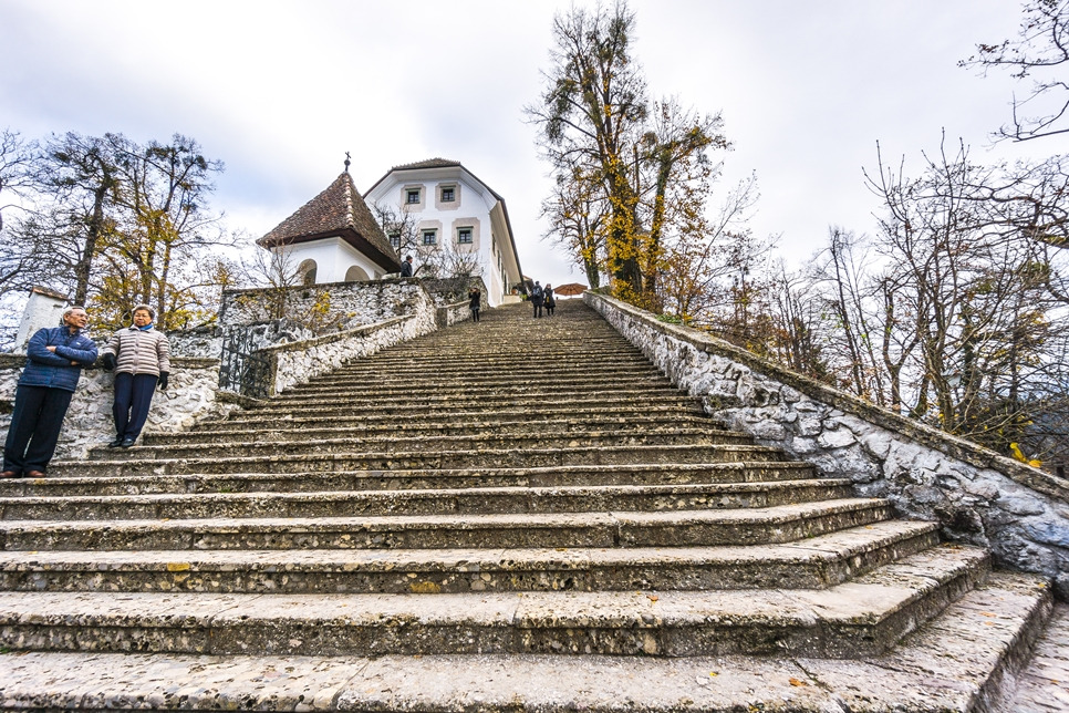 블레드 섬에 도착을 했고, 계단길을 따라서 오르게 되면 마리아승천성당을 만나볼 수 있다. 이곳은 바로크 양식의 성당으로 6세기 무렵 슬라브인들이 지바 여신을 숭배하기 위해서 지은 건물이라고 한다. 이후 개종하며 성당으로 쓰이게 되었고, 내부에는 종탑의 종을 울릴 수 있는 밧줄이 있다. 이 종을 울리게 되면, 종탑의 종이 울리며 소원이 이루어진다는 전설이 있다.