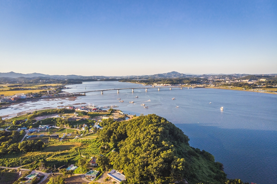 하지만 이렇게 하늘에서 바라보게 되었을 때, 온전한 황산도의 모습을 알게 된다. 사진 속 가득한 초록색 지형은 마치 작은 공룡의 형상을 하고 있는 것만 같다. 충주 대청호에도 악어섬이 있다고 들었던 것 같은데, 이곳 또한 재밌는 지형을 하고 있는 것 같다. 여행이란 스토리텔링이 주는 의미가 상당하기에 전망대라도 생기면 이곳 역시 유명해질 가능성은 없다고만 할 수 있을까.