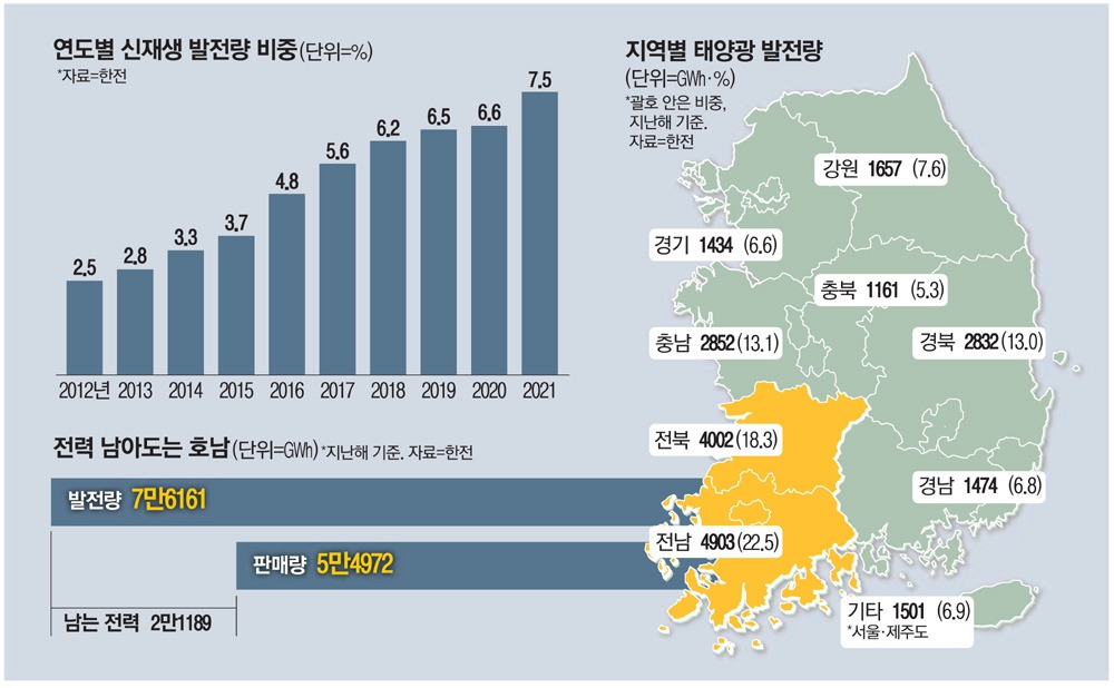 국내 태양광 발전에 대해 잘 알려진 사실 중 하나가, 호남지역에서 국내 발전량의 약 40%가 생성된다는 점이다. 이는 평야 지역의 특성이 만들어내는 풍부한 일조량과 낮은 땅값 등이 반영된 결과인데, 그 중에서도 새만금의 경우 발전 시간 또한 '일평균 4.18시간'으로 전국 평균 발전시간인 3.72시간 대비 약 12%가 높다고 한다. (2구역에서는 일 평균 421mwh 규모의 발전이 이루어지고 있었다.) 이는 새만금의 지리적 특성 상 햇빛을 가리는 산이나 건물이 없는게 가장 큰 요인이라고. 여기에 더불어 바닷가로부터 불어오는 해풍으로 인해 모듈의 과열을 조금은 식혀주는 효과 또한 패널 효율을 높이는데에 한 몫을 한다.