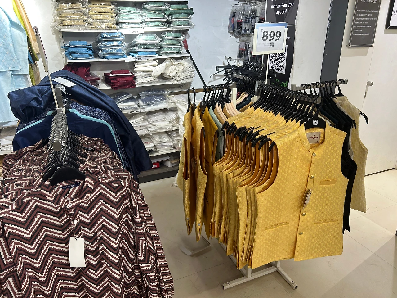 실망 가득한 몸을 이끌고, 다시 호텔로 걸어가던 길에 번화가처럼 보이는 대로가 있어서 구경하러 걸어갔다. 길거리에 인도 전통 복장인 여성용 쿠르타 (Kurta)를 걸어놓고 파는 곳도 있고, 꽃집도 있고, 간식 파는 곳도 있는, 말 그대로 현지 시장 느낌이었다. 그러다가 브이-마트 (V-Mart)라고, 적힌 건물로 가보니, 남성복도 길거리에 걸려있어서 남성용 쿠르타나 네루 재킷으로 불리는 정장 조끼도 팔지 않을까 싶어 들어갔다. 들어가 보니, 1층은 여성복, 2층은 남성복, 3층은 아동복, 4층은 생활용품을 파는 슈퍼마켓이었다. 다행히 2층으로 가니 남성용 인도 전통복 판매대가 있었다. 크지는 않지만, 할인도 하고 있어서 내 치수에 맞는 옷들을 몇 개 집었다. 가격이 꽤 나갈 것 같아서 걱정했는데, 아래 사진의 3벌을 사서 700루피 (약 11000원) 조금 넘게 나왔다. 보스턴에서 학교 다닐 때 디왈리 (Diwali) 같은 인도 축제를 기념하는 파티가 열리면 인도 전통복을 입고 와달라는 부탁을 친구들로부터 받아서, 꼭 잘 맞는 쿠르타 셔츠와 네루 재킷 (Nehru Jacket)을 사 가고 싶었다. 실롱에서도 살 수 있지만, 본 김에 그냥 샀다.