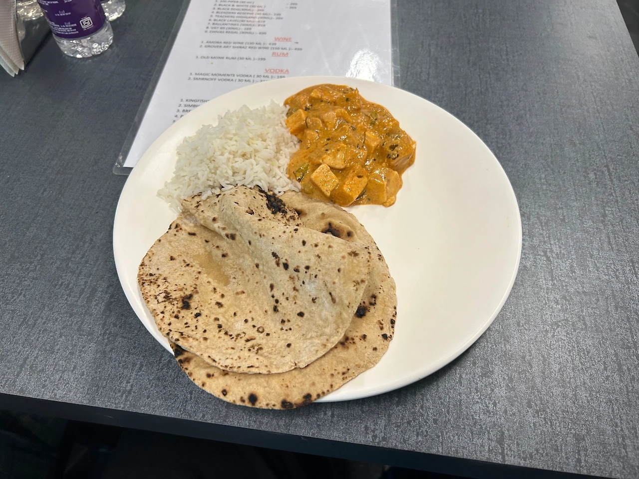 30루피를 내는 것은 괜찮았는데, 기사님이 잔돈이 없다는 것이 문제였다. 나도 작은 돈을 이미 다 써서 없었다. 결국은 내가 가지고 있는 해외 앱을 통해서 기사님께 직접 송금해 드렸다. 수수료도 조금 나오고, 기분이 그렇게 좋지는 않았지만, 어찌하겠는가. 돈을 내고 빠르게 공항 안으로 들어왔다. 공항 내부는 처음 느낀 그대로 깔끔하고, 시원하다. 공항 벤치에 앉아서 조금 글을 쓰다가 라운지로 갔다. 라운지 가격은 524루피 (약 8,350원)으로, 여기도 해외 카드는 받지 않는다. 무조건 현금으로 결제해야 한다. 라운지 내부에는 파니르 카레를 비롯한 인도 음식이 있는 간단한 뷔페와 앉아서 쉴 수 있는 소파가 있다. 라운지에서 식사할 때 콜라나 사이다는 무료로 주니, 필요하다면 꼭 요청해서 먹자.